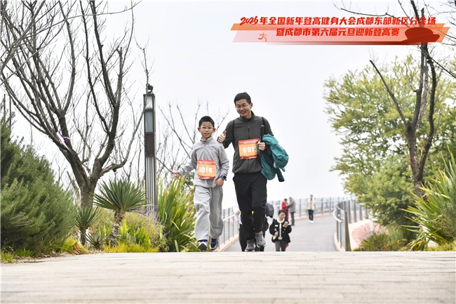 “这是我第三次在丹景台参加新年登高,今年报名了新增的亲子定向。主办方考虑很周到,给我们提供了酒店景点优惠,我们一家昨天就住过来了。今天孩子一路都很兴奋,既锻炼了身体,又体验了世运项目,一会儿我们还计划去三岔湖看红嘴鸥!”来自成都的李翔带着8岁的儿子完赛后,脸上洋溢着幸福的笑容。首次参赛的王萌萌是和朋友一块报名的登高挑战组,在终点重冲线后,激动地说:“赛道沿途风景太美了,用这样健康的方式迎接新年,特别有意义,一会儿我们还要去喝东部新区特色羊肉汤。”