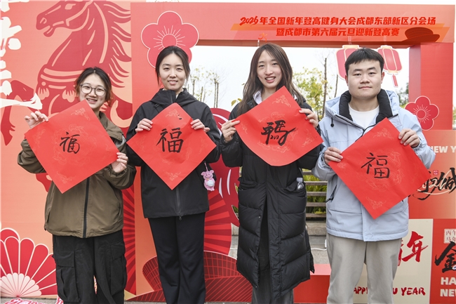 登顶丹景阁,精彩并未落幕。在首层平台打造的元旦迎新嘉年华,让选手们在完赛后一站式享受欢乐体验。新年心愿打卡区人头攒动,大家纷纷插旗打卡,写下新年期许;趣迎新年互动区的彩绘新年、趣味猜谜、体育科普等项目老少咸宜,欢声笑语不断;民俗年味体验区的写福字、画糖画、亲子舞狮活动,让传统民俗与新年氛围完美融合,重拾儿时年味;特色农夫集市区内,东部新区特色产品吸引选手驻足品尝选购。